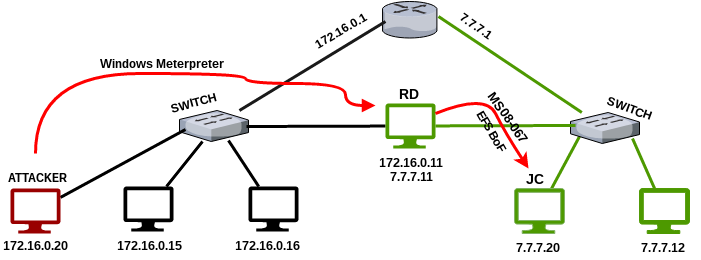 - JC had a two different vulnerability. Easy File Share and MS08-067.